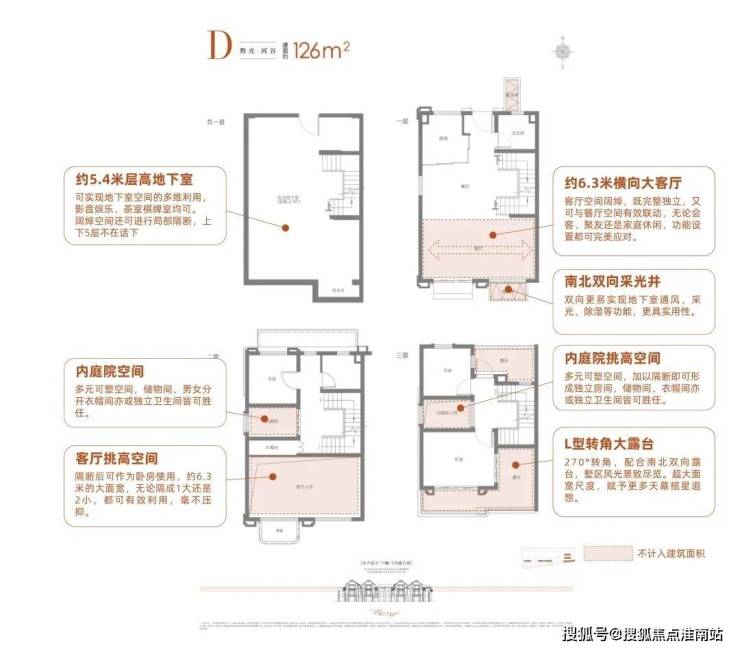约5.4米层高地下室,纵享大尺度空间,加上大面积挑高可塑方案,可挑战N个126㎡的实用极限。