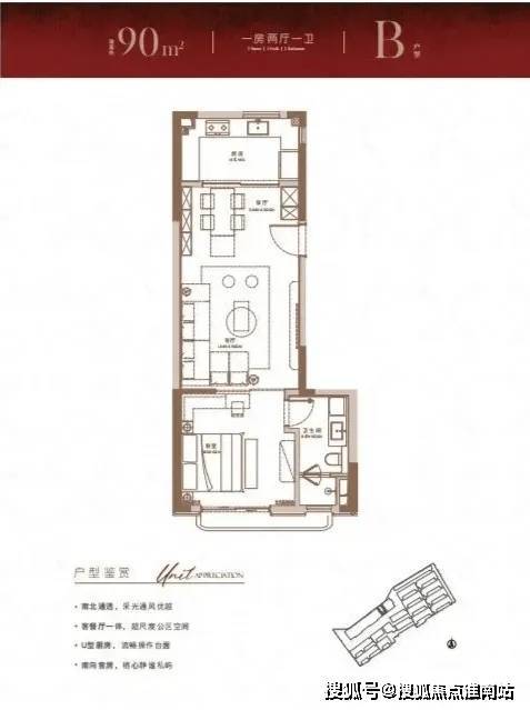 此外,除了上述百平2房户型外。还推出了建面约90㎡的一房设计。该设计专为追求精致生活的都市精英量身打造,以套房主卧为核心,营造出尊崇而舒适的居住体验。