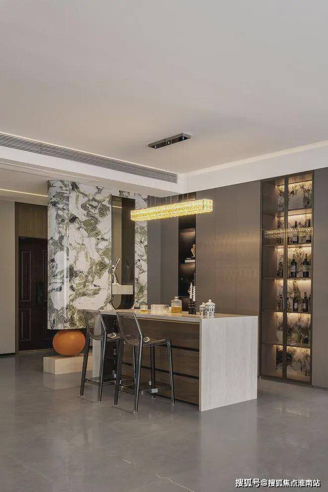 中岛设计既独立又能和其他空间联动起来,变成一个更大的休闲区、社交场,可开可合、可静可动,让空间有了更多的可能性。