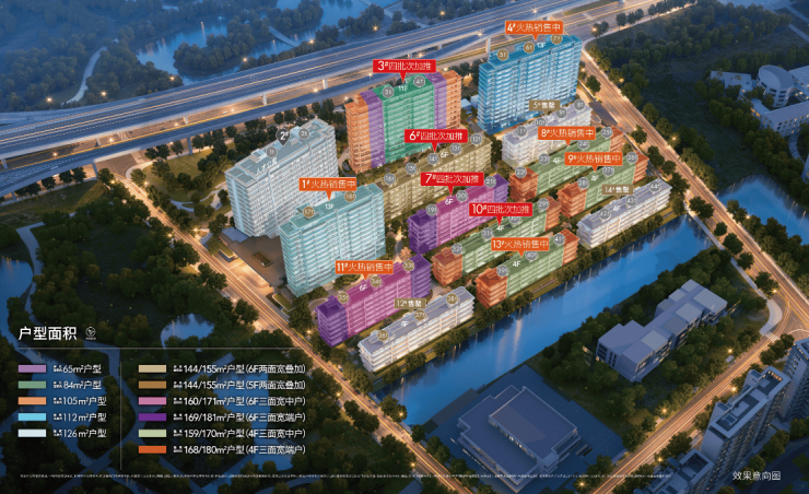 在售户型:建面约112-126㎡小高层3-4房,159-182㎡叠墅