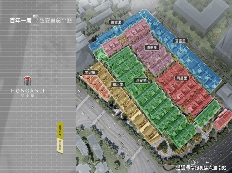 弘安里这块地原由8个街坊组成,其中东寿坊和永安里因后期加建改建较大,体量也很小,为了园区整体考虑,不再保留,延续了剩余6个组团:德年里、和乐里、宝兴里、更富里和鸿安里。