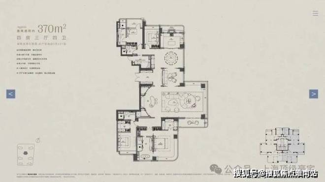 以下为建面约370㎡户型过程稿亮点: