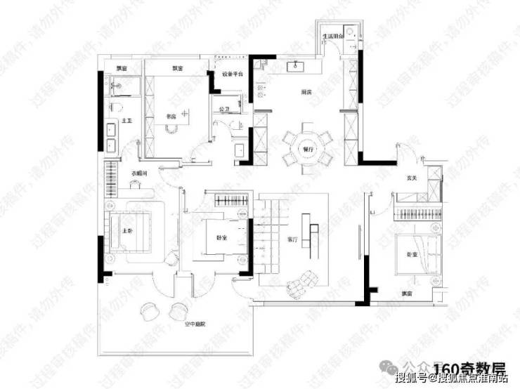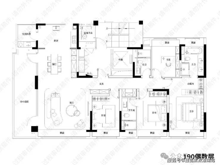 约190㎡偶数户型图,私家电梯入户,南向双套房,其中主卧套房+衣帽间+独立卫浴。
