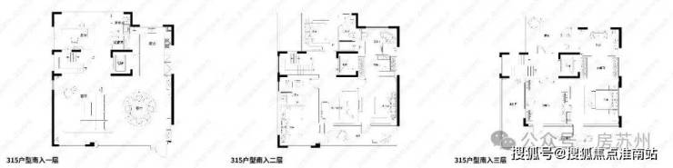 约315㎡户型的特点就是彻底动静分区,一楼超大公区+茶室,二楼经改造,在三套房之外还带亲子阅读间,也可以做家庭客厅,三楼是整层主卧套房,带南北双露台。