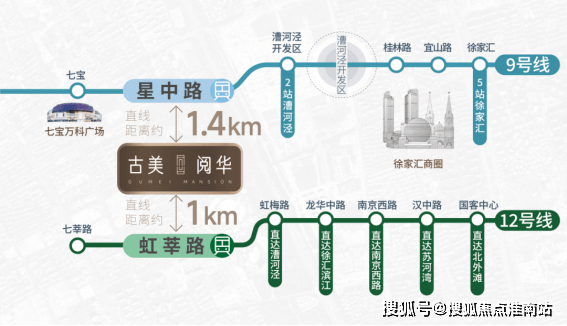 古美阅华距9号线星中路站直线距离约1.4KM,距离12号线虹莘路站直线距离约1KM,可直达漕河泾、徐汇滨江、南京西路、苏河湾、北外滩等核心区!且在嘉闵线(在建)通车后,可3站直达虹桥,7站到浦东机场。