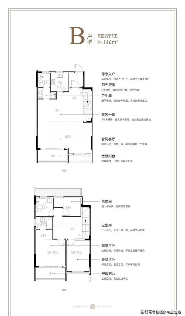 叠墅(146-147㎡):分上叠(三叠四层,带电梯、露台)和下叠(赠南北双庭院20-80㎡)