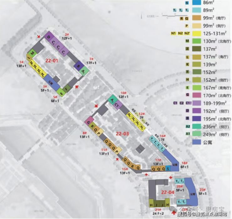 不包含非标户型的情况下,项目共计有21个户型,包含建面约86-249㎡3-4房!