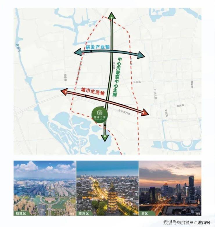 项目位于相城、姑苏、新区三区交汇处——虎丘湿地公园北黄桥板块,占据“三心两轴一廊规划”的重要区位,是自然资源、城市规划、产业布局正在全新融合的一个板块。