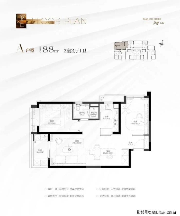 建筑面积约88㎡2房A户型:千万级预算买进苏河湾核心位置的绝版机遇,地段控闭眼冲!