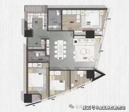 户型方正,空间独立,面宽进深比近1:1;