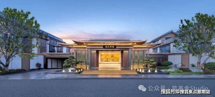 建筑立面以现代材料演绎宋代美学,铝板一体板与金属漆一体板精心构筑,奢石点缀其间,匠心独运地融合现代技艺与宋式形制。飞檐楼阁与祥纹图样,于细节处尽显端方威仪与风雅逸韵。