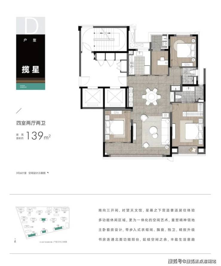 139㎡四房:四开间朝南+7.3米横厅,连通多功能书房,适配三代同堂,公园首排房源总价403万起。
