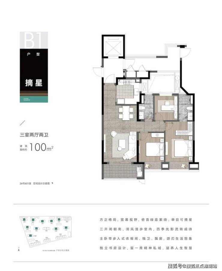 100㎡三房:5.8米南向观景阳台、主卧套房式设计,总价约300万起。