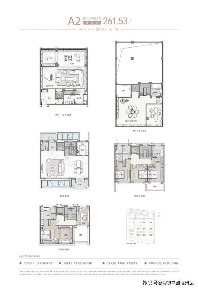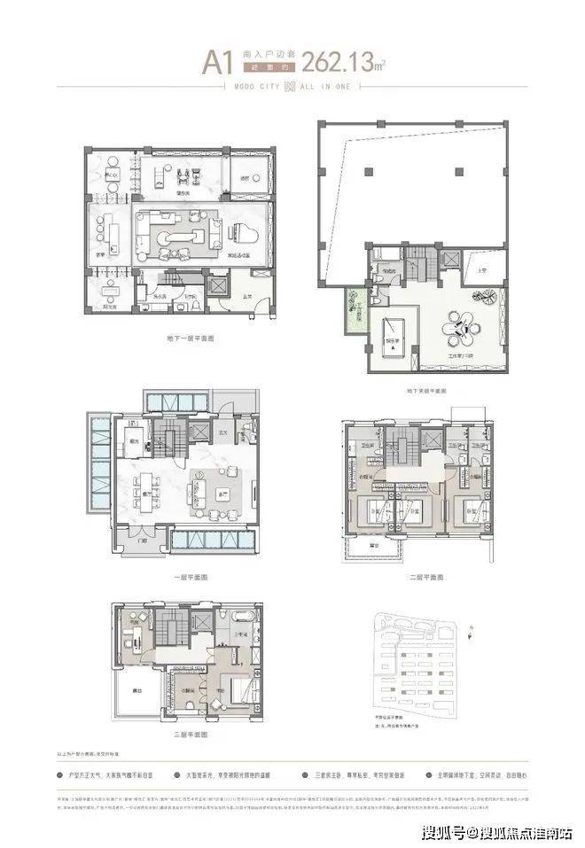 主力面约262~306㎡联排别墅第上三层+地下2层+大花园总价约1398万起目前“样板间”已开放