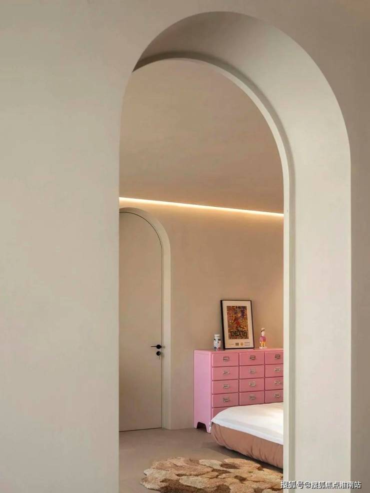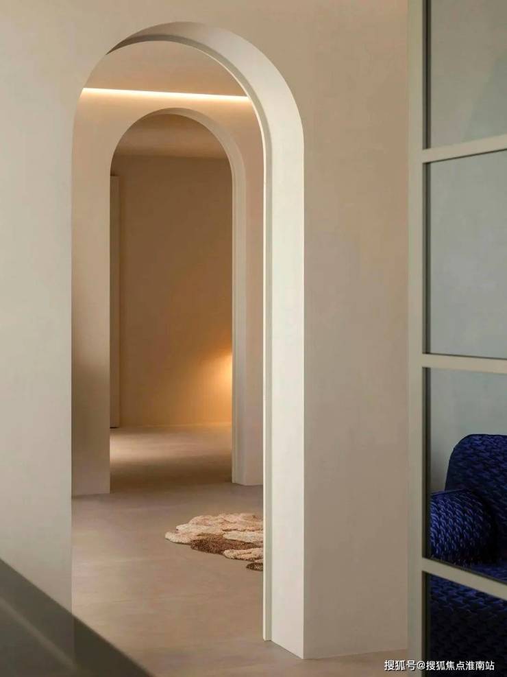 墙体蕴含原始纹理组合拱形门,打造洞穴般的观感。