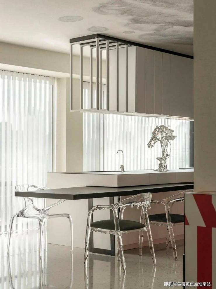 通过亚克力餐椅,与远处“冰川”达成艺术共鸣。