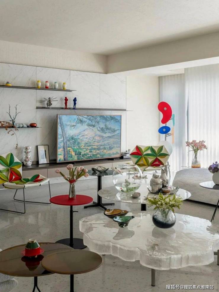 通过可爱绵羊、绿植、艺术物件和适当家具等,打造丰盈的艺术画面。