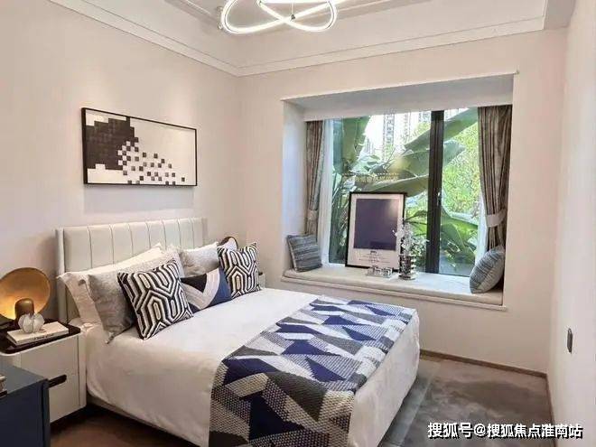 主卧为套间,带有270°转角飘窗、定制衣帽间及独立卫浴。