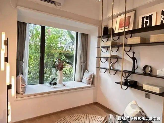 另一个房间,样板间则作为创意书房,利用坐垫和靠枕等软装将飘窗打造为阅读区。
