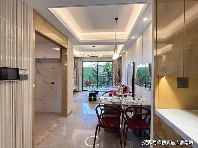 客餐厅一体,虽为竖厅设计,但开间够宽阔,视觉上能达到横厅带来的奢阔效果。