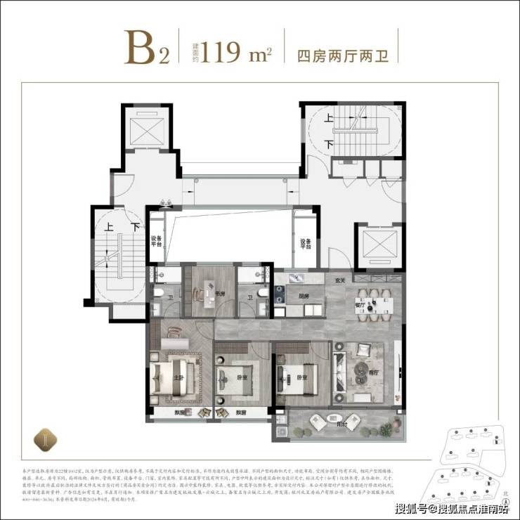 二孩理想家:建面约119方四房两卫
