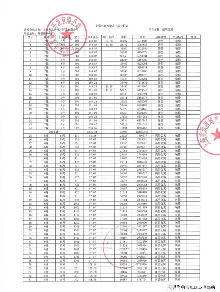 项目一房一价表