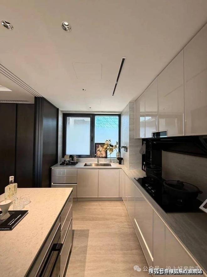 走进厨房,四联动拉丝玻璃移门正上演变形记,封闭模式隔绝油烟,半开放模式连通餐厅,全开模式则让烹饪成为社交秀场。