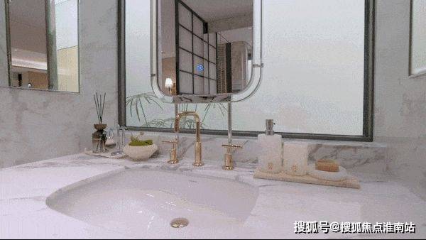 当同行还在为台盆尺寸纠结时,翡云悦府已将战场推向飘窗。将台盆与镜子悬浮于飘窗之上,创造出空中盥洗室的奇妙观感。