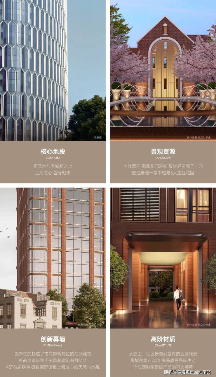萃取凡尔赛宫苑、克鲁姆洛夫城堡花园、兰贝斯花园、孙科别墅等全球花园灵感,让每一栋建筑都成为城市风景的一部分,打造十字中央观景轴线,五个大主题花园,重续海派生活的优雅格调,极具气场的迎宾前场,层层迭进的归家礼序,承载当代归家的大宅仪式。
