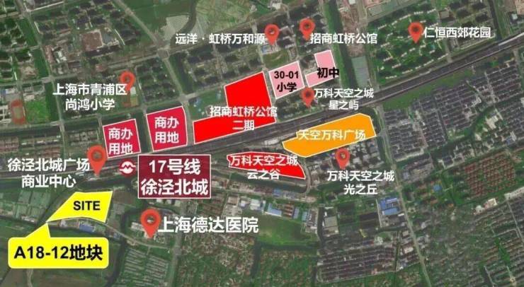 项目北侧紧邻17号线徐泾北城站(暂时需绕行河道),1站可达徐盈路天空万科广场,2站至蟠龙古镇商业区,3站直达国家会展中心,4站即达虹桥枢纽。
