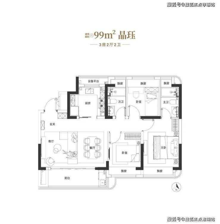 建面约99㎡三房户型图▼