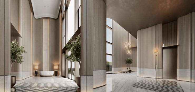 6 幢 3 号二层大堂效果图,仅供参考,最终交付标准请以合同约定为准