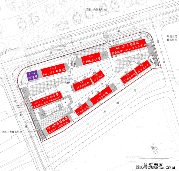 其中,1#、2#-1、4#-2、5#、6#为13-17层高层住宅;部分楼栋首层架空,并设置居民休闲设施。6#首层为公建配套,首二层配套。
