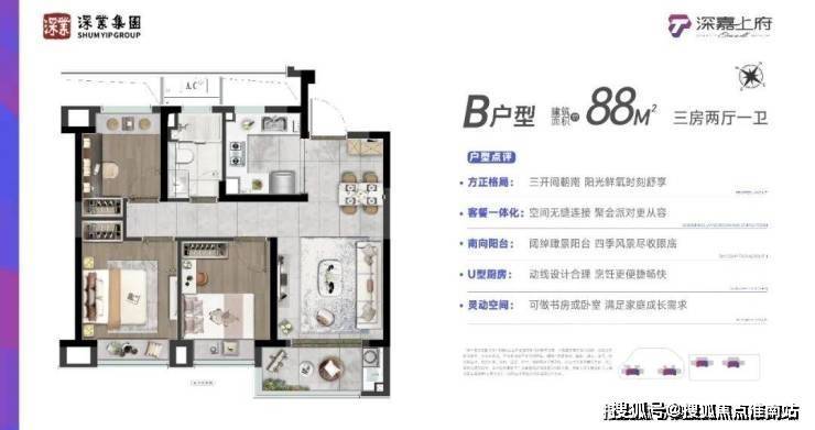 建面约88-99m²3房即将上市