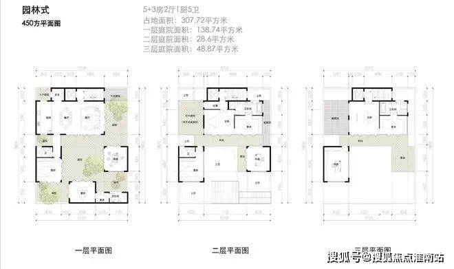 建面约450-700㎡园林式合院;