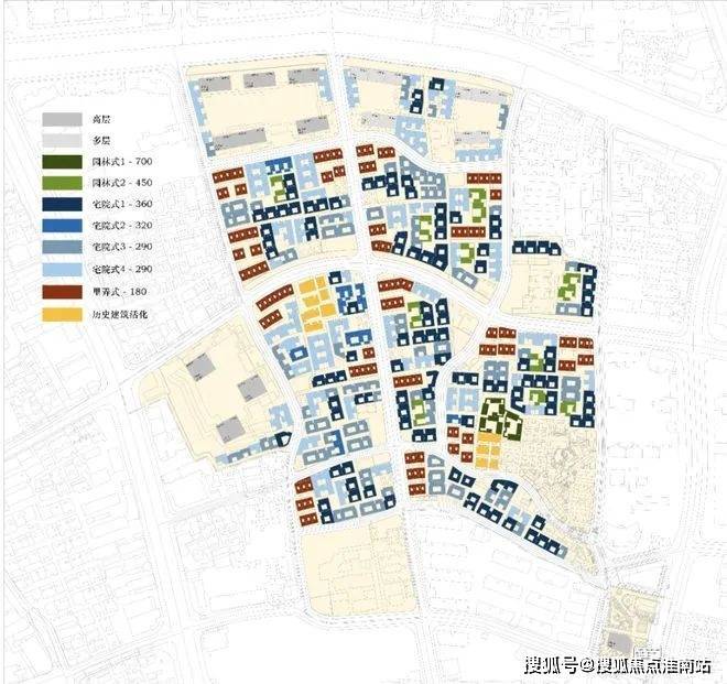 其中新增商业量为10543㎡,历史建筑活化为5900㎡,文保单位活化为5228㎡;具体分布如下: