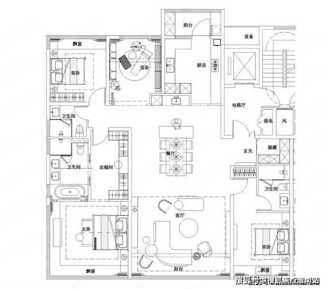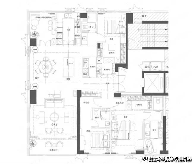 “楼王”产品——约230-286平方米江景大平层,西边户配备270度落地采光窗,主卧套房面积约40平方米,带独立卫生间、步入式衣帽间和观景飘窗。中西厨分离设计、嵌入式高端家电配置,则满足了高端家庭的宴请需求。
