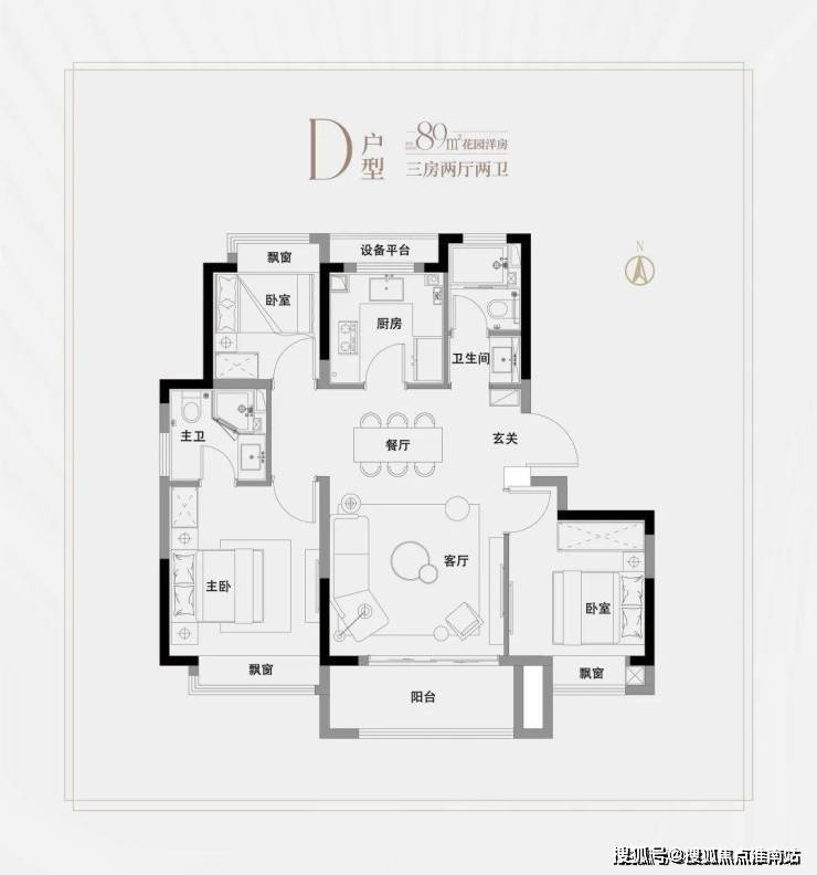 高层建面约94㎡3房2厅2卫