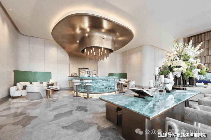 步入雅致的美学生活馆,周遭尽是白洞石的精致铺陈,地面则以鸢尾花图案巧妙铺就,不仅展现出柔和而高雅的色调,更在每个细节中融入鸢尾花的优雅轮廓,将“光明与希望”的意境渲染得淋漓尽致。