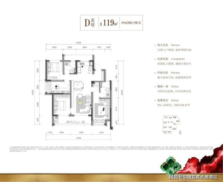 建面约119㎡精致四居,难得一遇的边套南厅舒适格局,约6.5米阳台无界连通餐客厅及独立玄关、套房式主卧,直接带来居住感受的实质性跃升。杭州绿城桂月云翠园售楼处电话☎:400-891-9910【开发商售楼处预约看房热线】(一对一热情vip服务)
