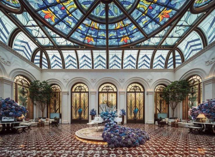 环抱式落客区灵感来自意大利许愿池,细看池底却铺陈龙鳞祥纹,含蓄传递东方祥瑞。