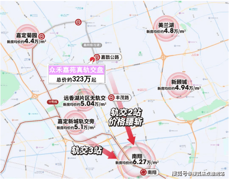众禾嘉苑:一批次总价约323万起,距离南翔站仅2站。