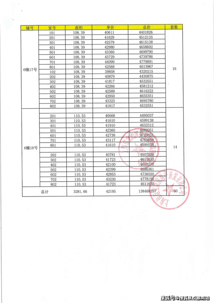 项目一房一价表