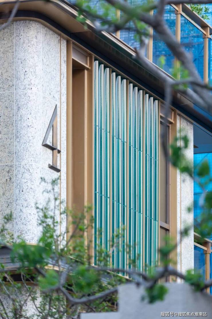 如玺华院 突破性地采用大面积天青色陶板外立面,这种源自宋代官窑青釉的代表色,以独特质感诠释了杭州千年宋韵。项目在有天有地的同时巧妙融汇了众多中国传统元素,让好房子讲好杭州故事。