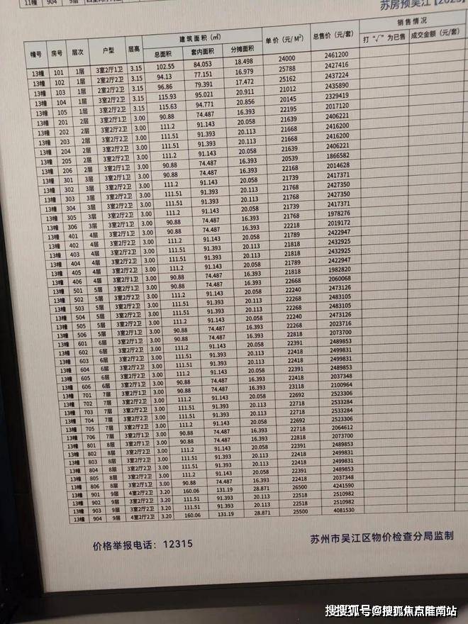 一房一价表: