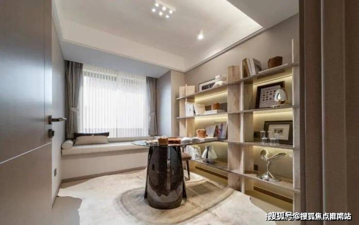 私密场域依旧保持静谧,黑白色基础上搭配了更多的色彩,例如深棕、浅紫等,艺术品的衬托深邃迷人,热络了家的氛围。