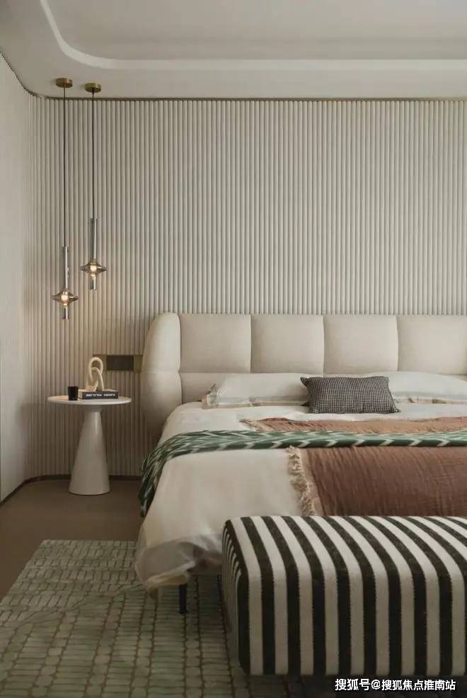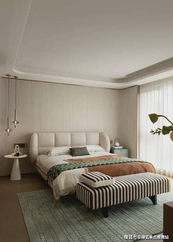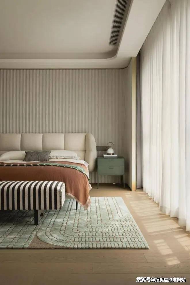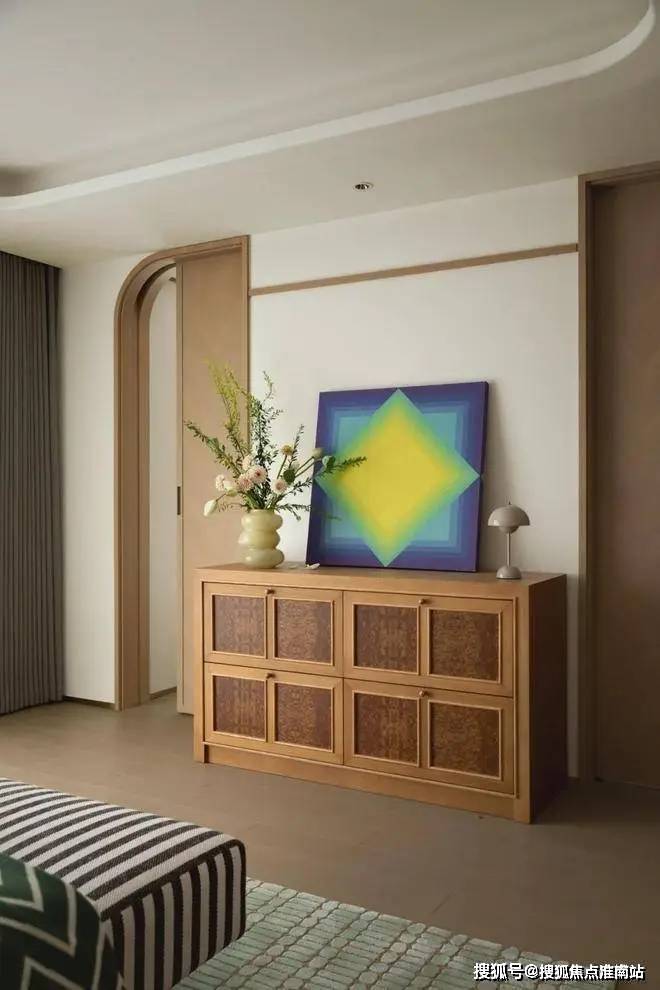 主卧做了半开半合的套房设计,双开口袋移门的设计思路既保留了原有的空间开阔感,又让卧室的功能更具私密性。