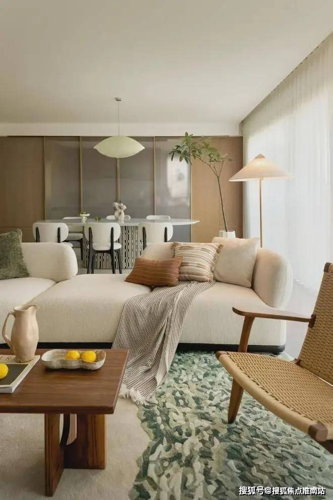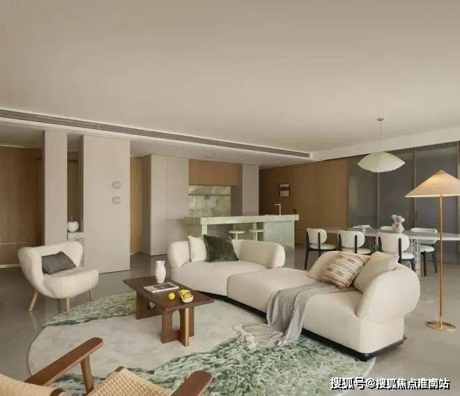 该项目整体的设计理念旨在追求一种内在的自然松弛感,将温润的材质与艺术的语言融会贯通,通过自然的肌理、温润雅致的石材、不同触感的面料之间组合糅合,演绎了现代人的生活美学,一场具有烟火气的艺术氛围就此展开。