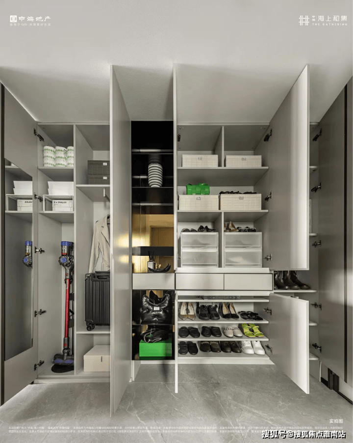 上海杨浦中海·海上和集售楼处电话☎:400-9659-259(预约看房热线)铸铝的铁门,整体约超300斤,相当于一般防盗门3-4倍,质感与安全感满满。超大玄关柜空间,约2.6m宽的超大玄关收纳,近0.4m的柜体深度,可以轻松收纳大量日常出门所需物品。