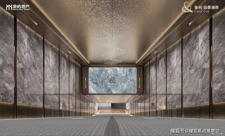 地库地面售楼处电话:400-998-9694采用彩色环氧地坪,既安全又美观。认证身份后进入精装地库大堂,大堂采用石膏板叠级圆弧吊顶,并饰以青绿岩版,严选仿木纹防火门,整体营造出高端酒店度假的氛围,让日常亦具轻奢仪式感。